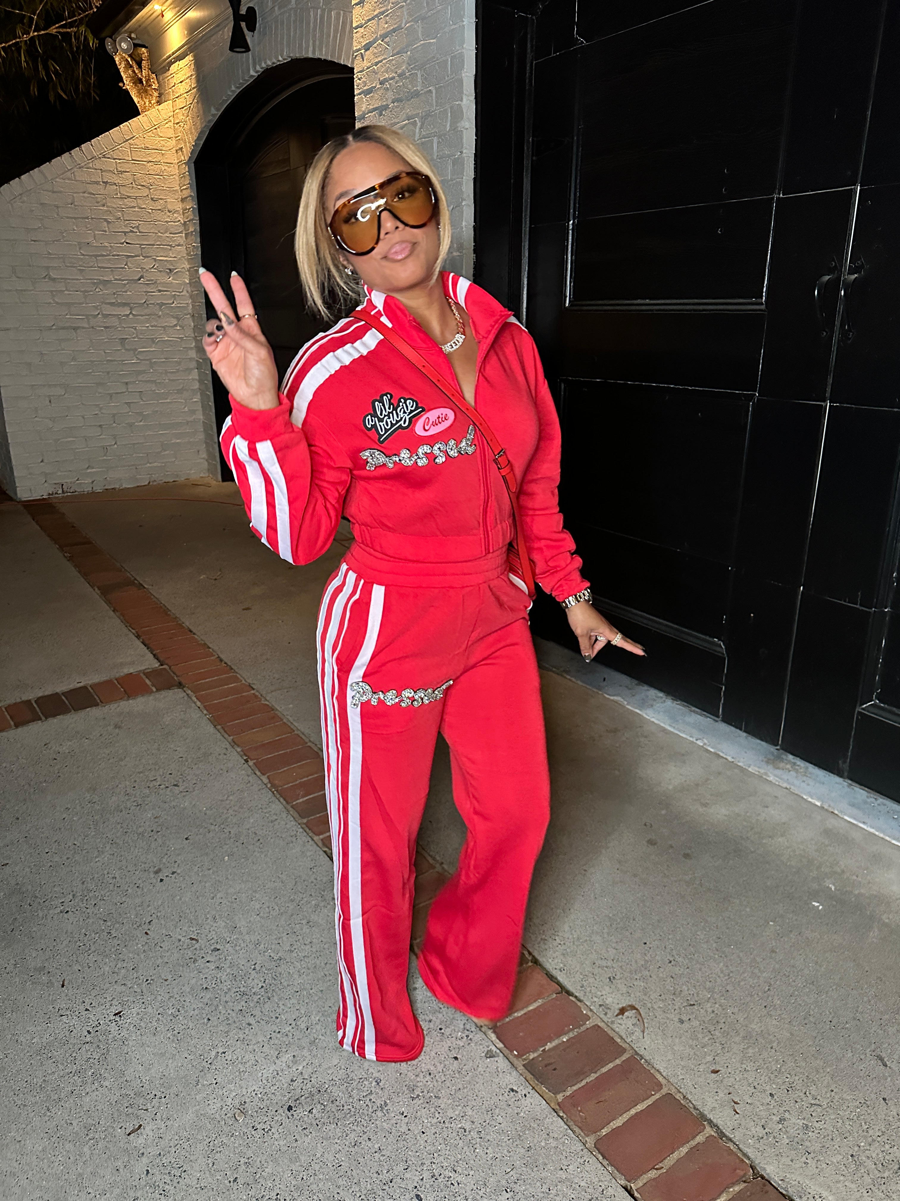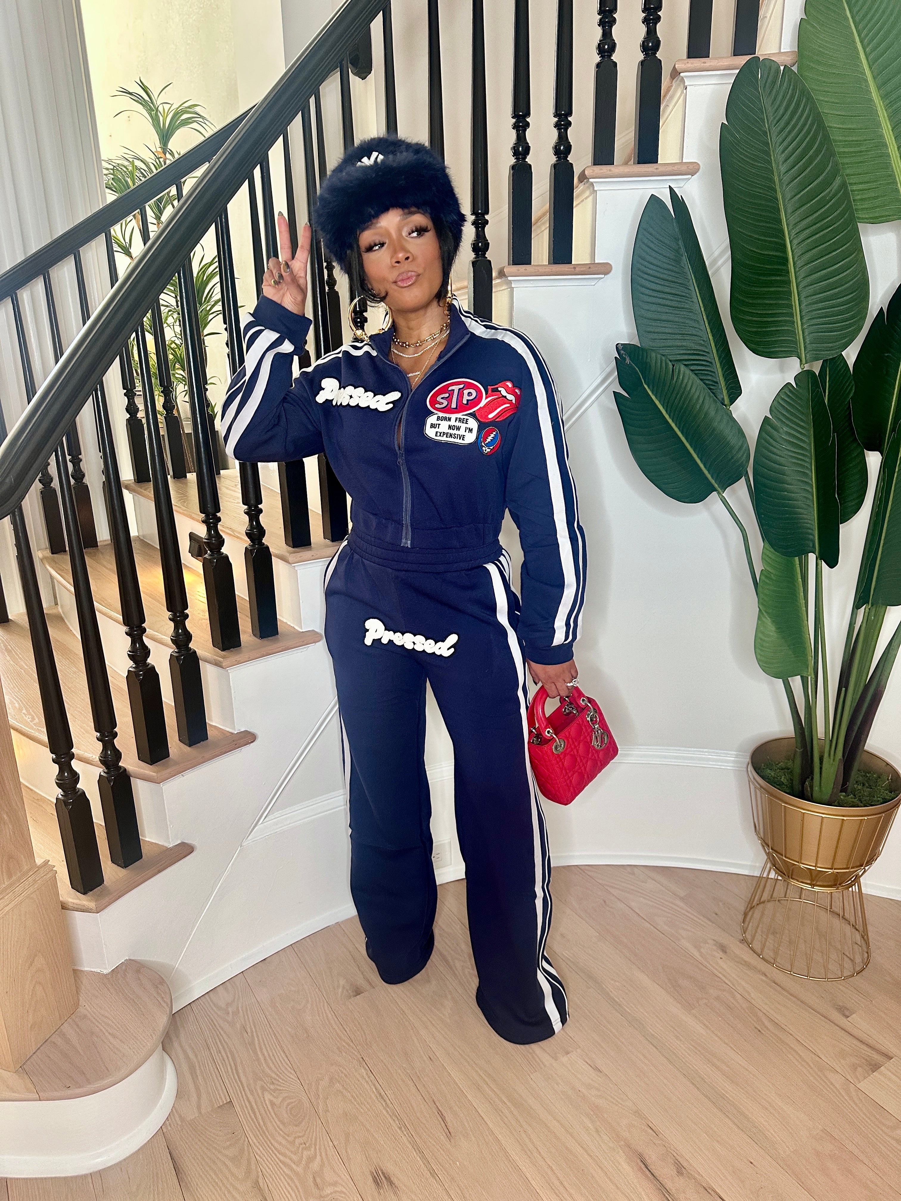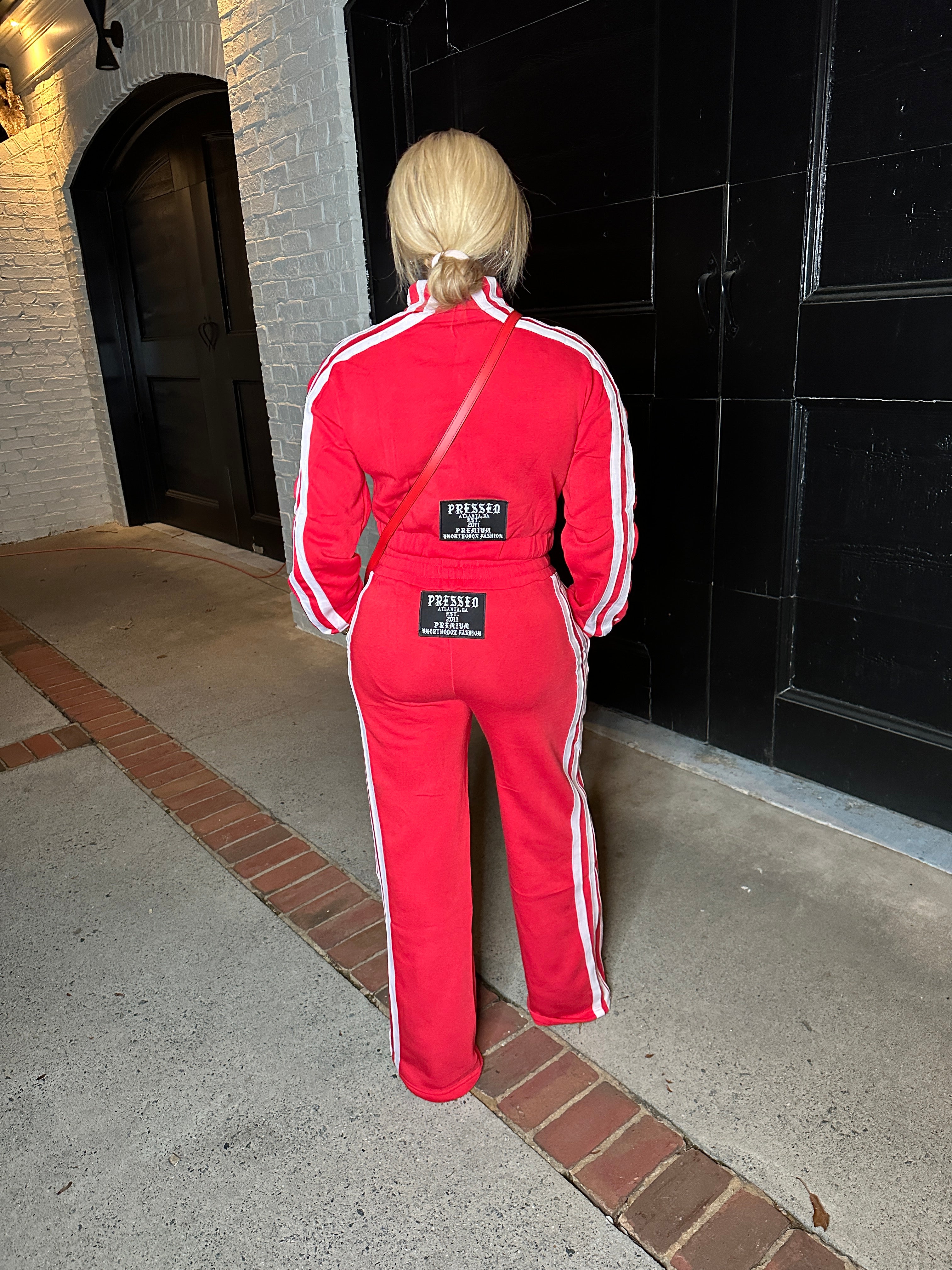 Pressed C&S Joggers Set: PRESSED EXCLUSIVE Great stretch, Cropped style fleece Jacket with matching wide leg joggers. Model is wearing size small. Available in Navy Blue, Olive Green & Red.