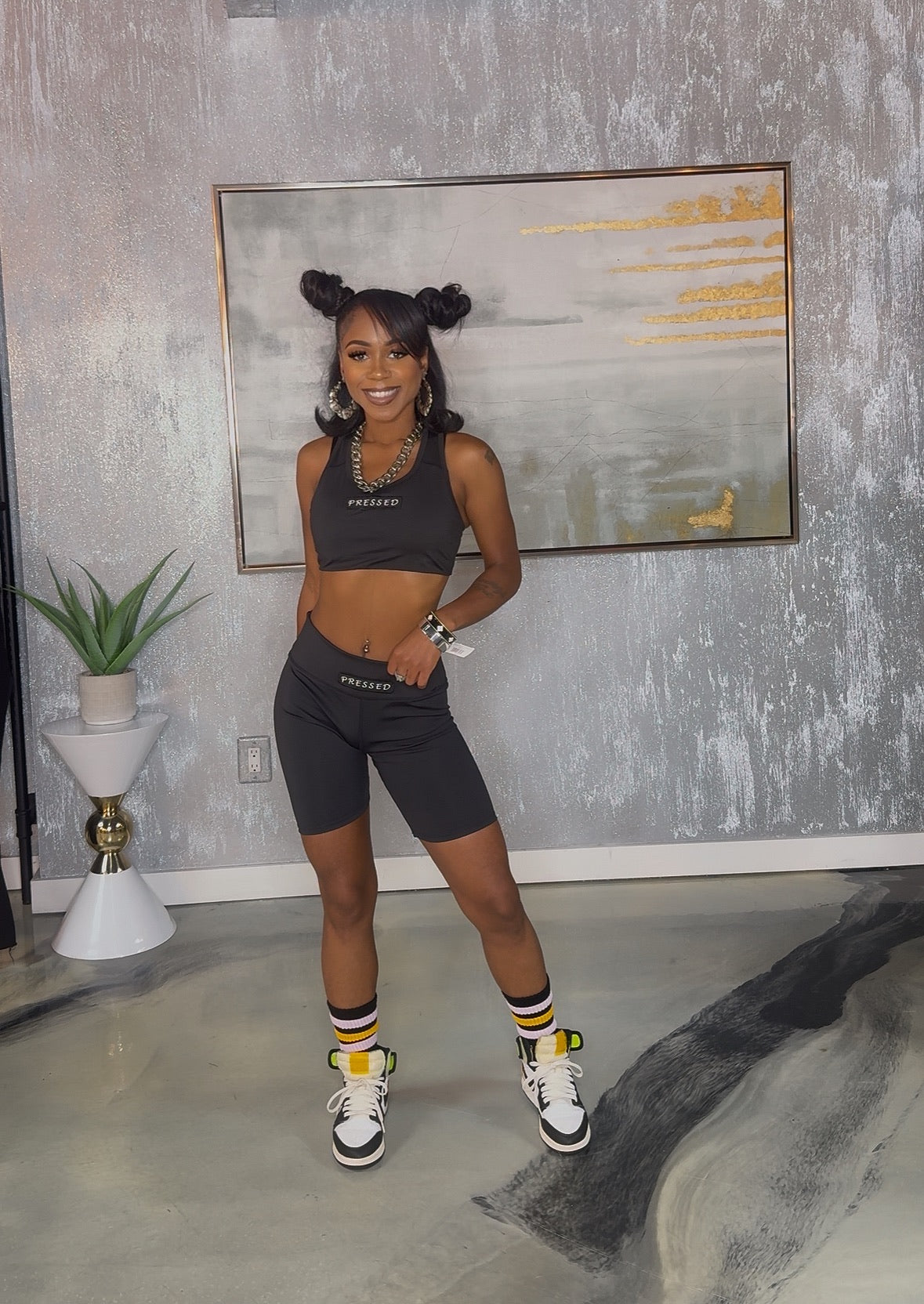 Work Me Out Set: Sports bra style. Model is wearing sz small. Stretchy