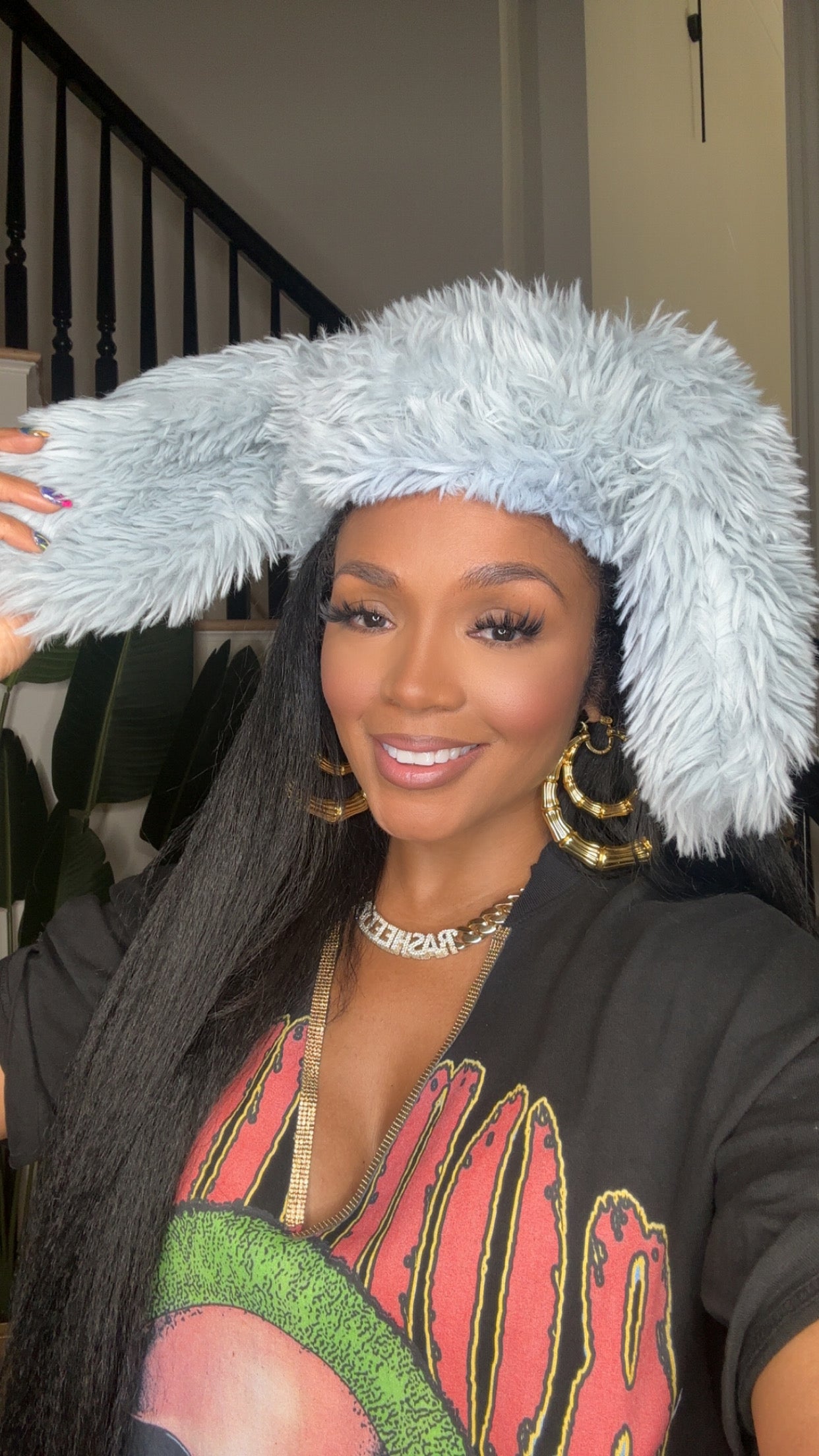Fury Ear Hat: Plush rabbit ear beanie with inside adjustable design available in 3 colors: Black, Neon Yellow and Light Blue.
